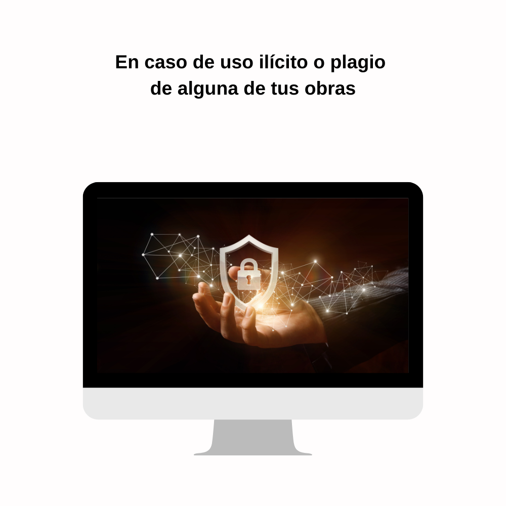 - Vigilancia diaria de tus obras, en el momento que detectemos una posible infracción o plagio serás notificado y nosotros iniciamos con el proceso de protección.